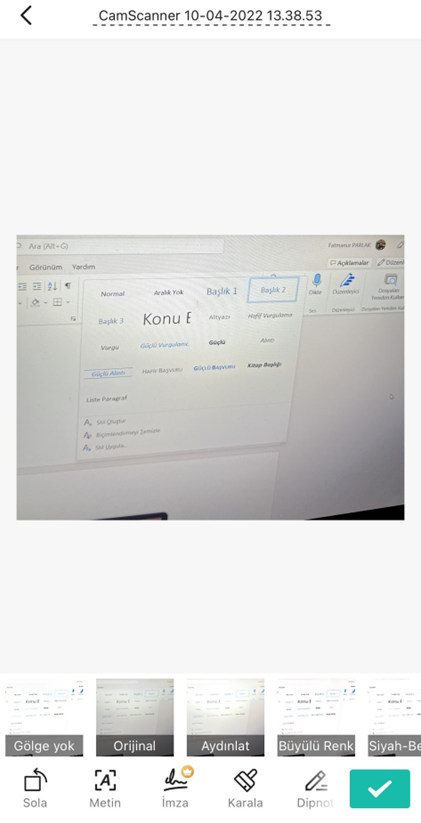 - Adım 2: Düzenleme ekranından taratılan resmi düzenleyin.